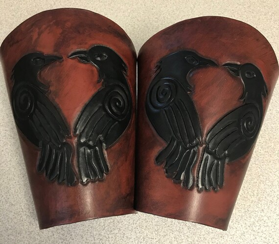 Odin S Ravens Leather Bracers Norse Huginn And Muninn Etsy Uk